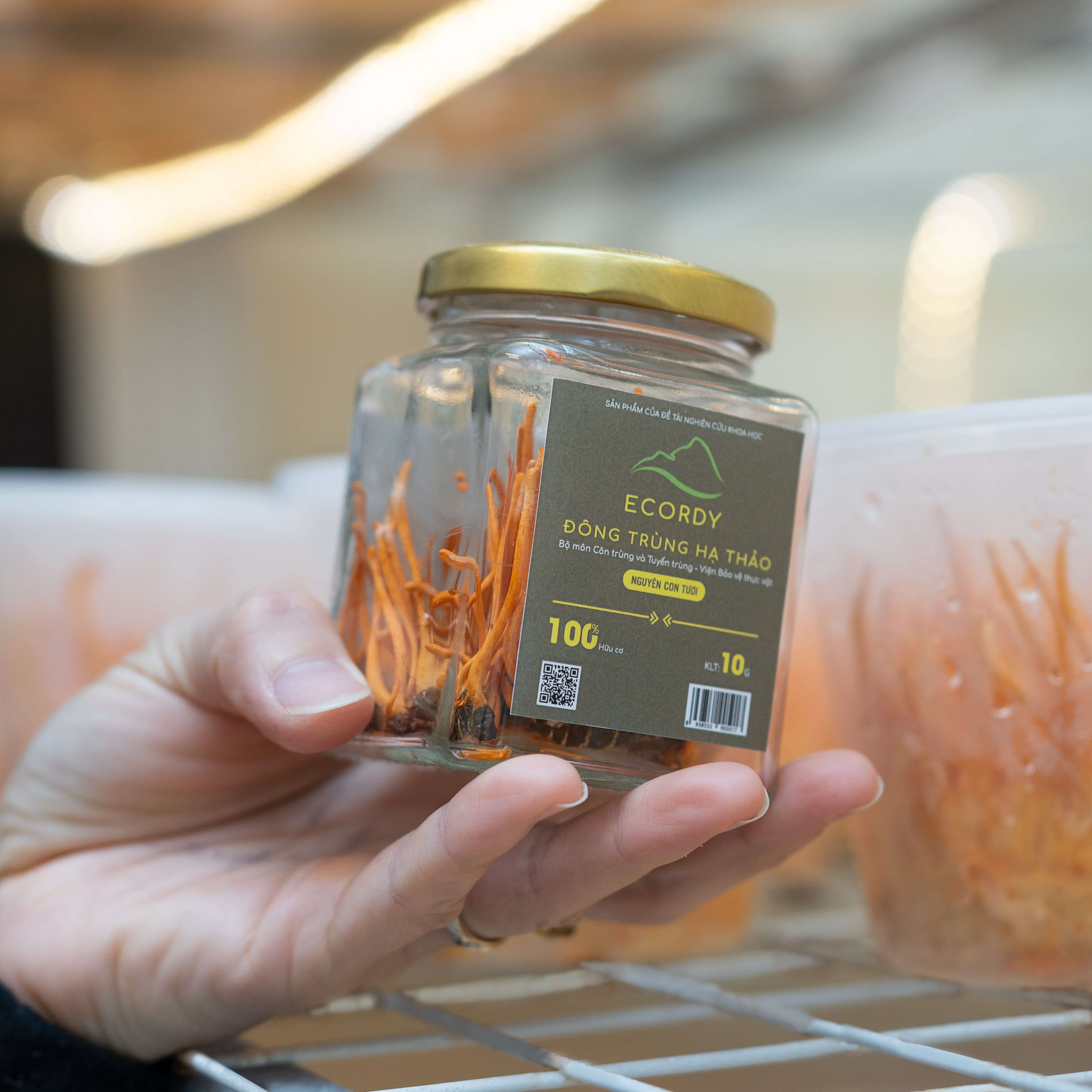 Sản phẩm này thu được khi cấy nấm trực tiếp lên kí chủ nhộng tằm cho ra các sợi nấm vàng cam. Sản phẩm nguyên con tươi mua về tự tay ngâm với rượu ngon sau đó để trưng phòng khách hoặc đem biếu, làm quà tặng thực sự rất thú vị, độc đáo và rất riêng. Sản phẩm rượu ngâm đúng cách có màu vàng cam hấp dẫn đặc trưng của Cordycep Militaris, mùi thơm, uống rất ngon và đặc biệt không lẫn vị với bất kì một loại rượu nào cả!